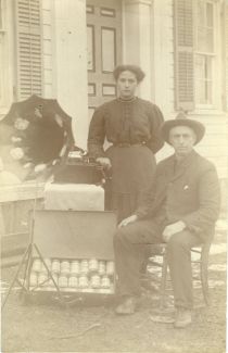 Tom and Mary Combs with Edison Standard 1909 (PM-0671). A sewing machine can be seen inside the doorway with Edison cylinder record boxes stacked on. | ||||