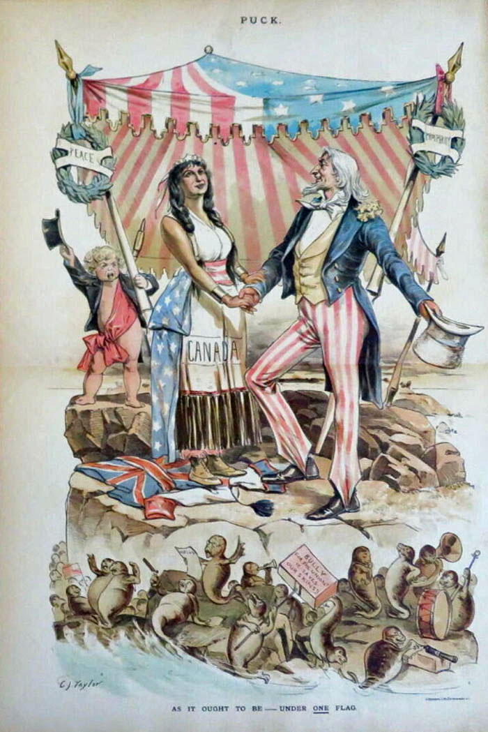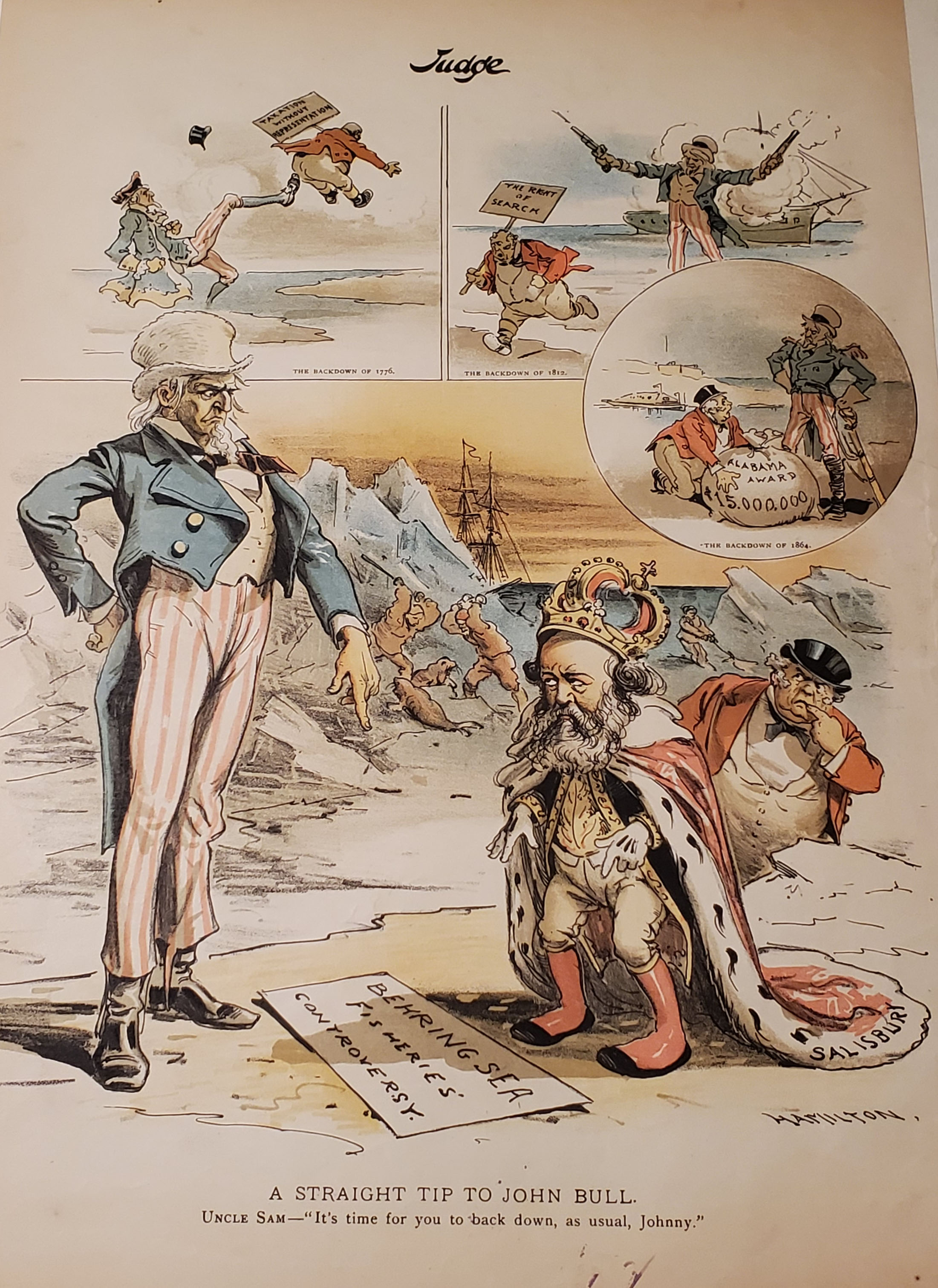 - "JOHN BULL AFTER US AGAIN." PUCK, July 24, 1889