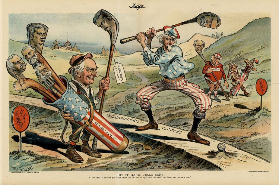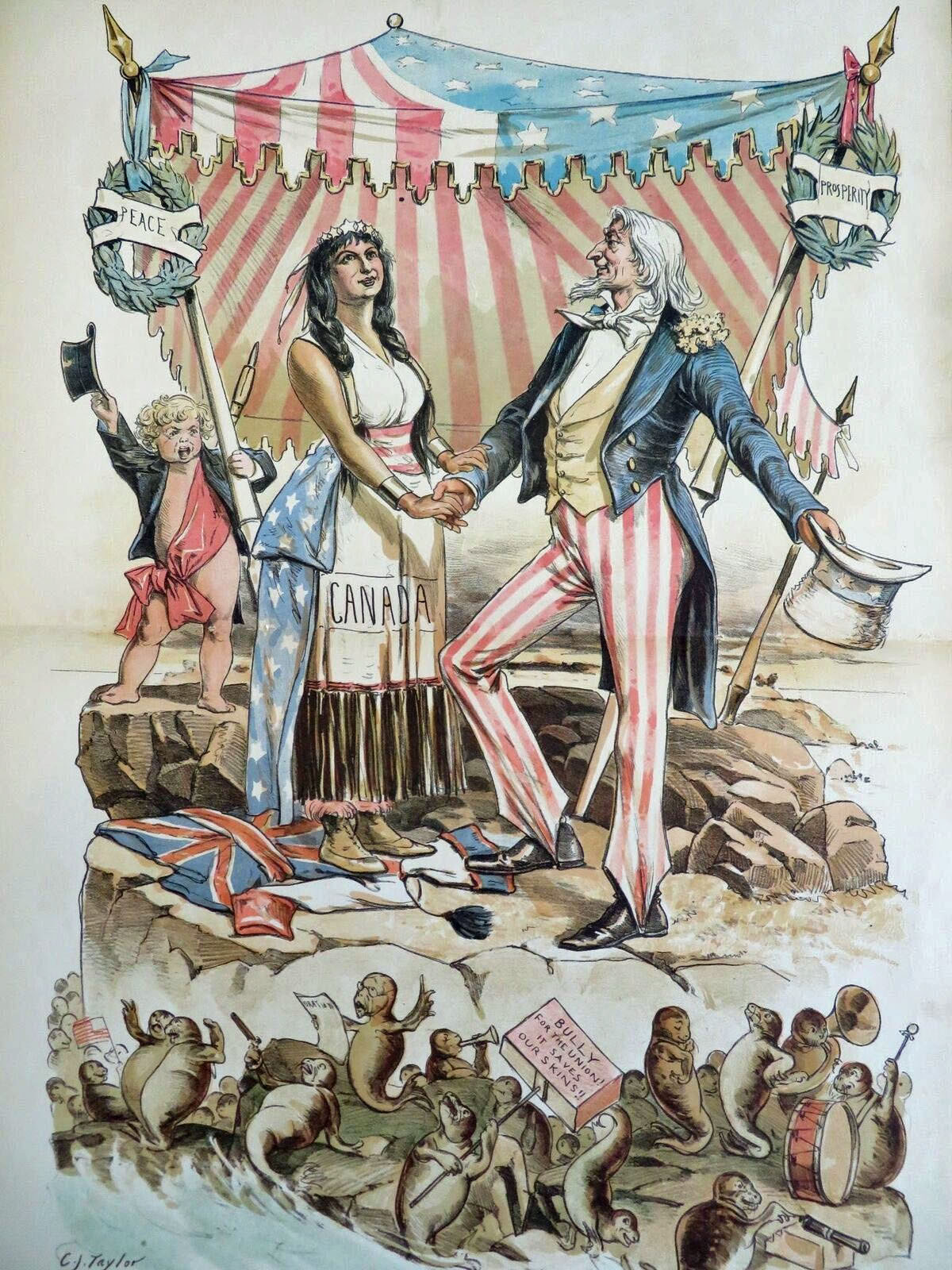 - "BRITISH ARROGANCE", PUCK, February 1887