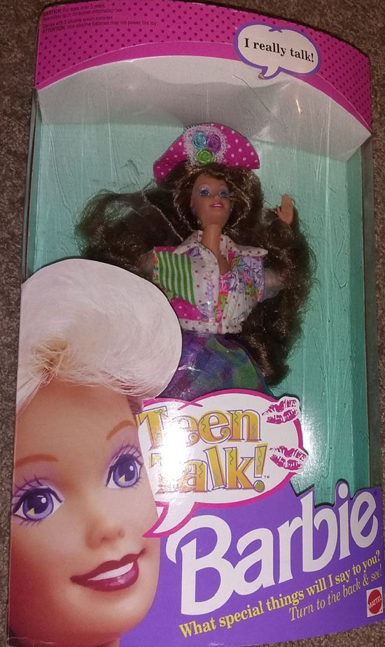 Teen Talk! Barbie - "Math class is tough!" In The New York Times article "Toys Will Be Toys: The Stereotypes Unravel," a Mattel talking toy misstep is recalled from 1992: